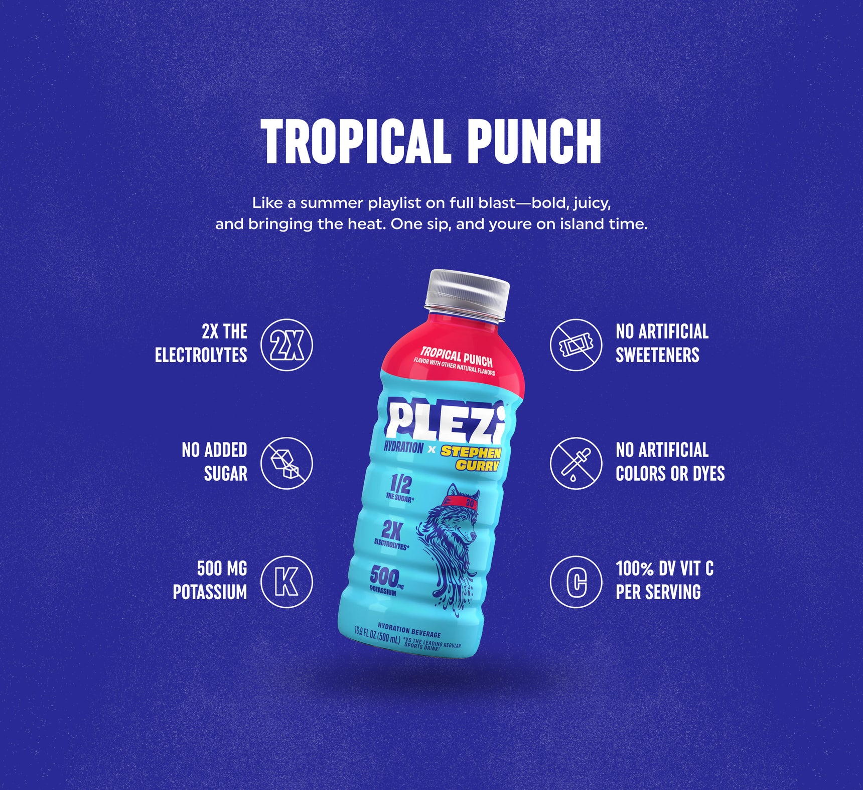 PLEZi Hydration is a healthier sports hydration drink purposefully designed with smart ingredients and unbeatable flavor. Created with NBA All-Star and PLEZi investor, Stephen Curry, PLEZi Hydration sets a new standard for how to hydrate with 2x the electrolytes* for performance, half the sugar*, and 7x the potassium* to help with recovery. No shortcuts—just bold flavor and hydration that keeps you going.